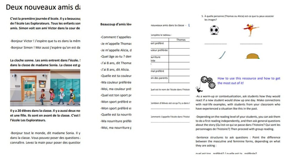 Vous trouverez de petites histoires avec un vocabulaire adapté pour les élèves.